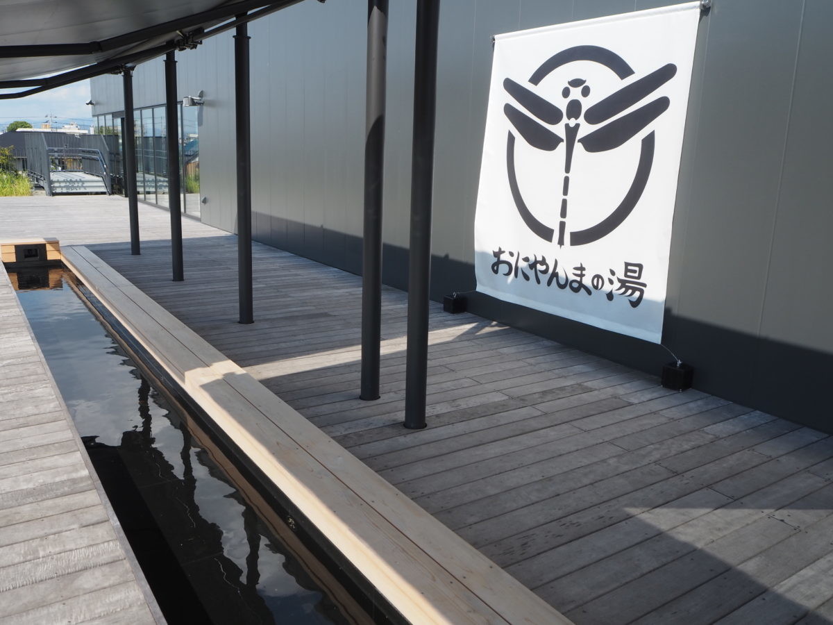 なんと、足湯(おにやんまの湯)も! ヤンマーの技術で、発電時の熱を使って温泉がわかせるというシステムです。