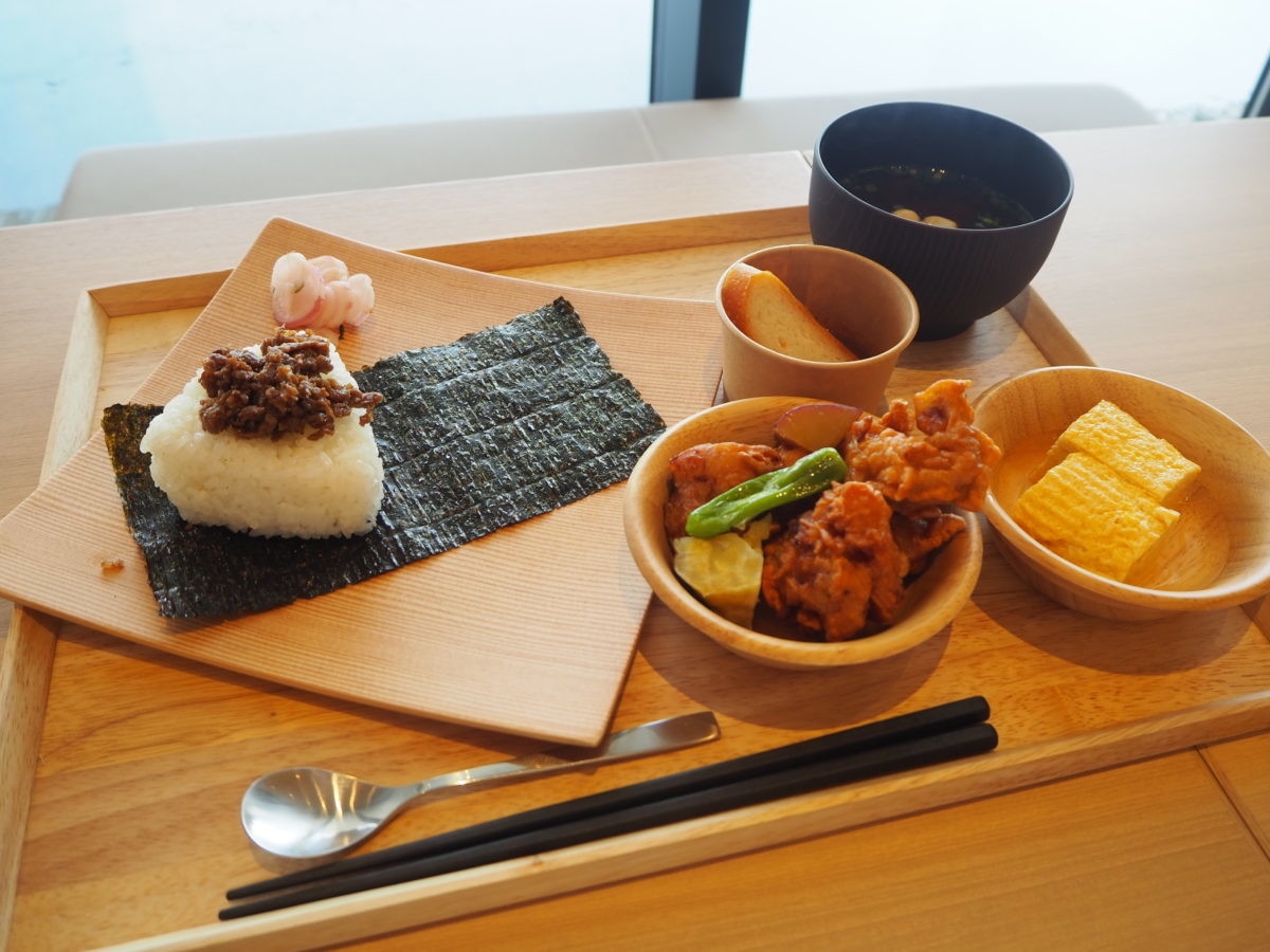 メインはおにぎり、サイドメニューには鶏のからあげやだし巻き卵、お味噌汁、カレーなど、どれも体と心に染み入るおいしさです。