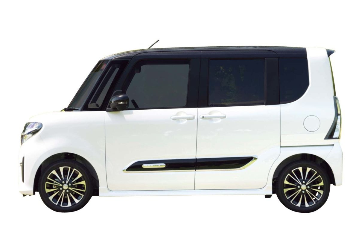 タント「カスタム」のボディカラーには、基本の全8色以外に、2トーンカラー3色が設定されています。この2トーンを選択した時のみ、写真のサイドガーニッシュが装着されます。デザインのアクセントが欲しい人向けです。