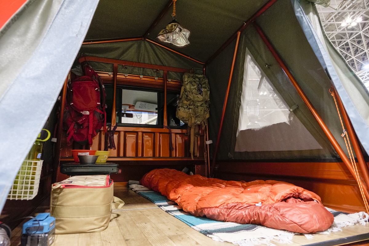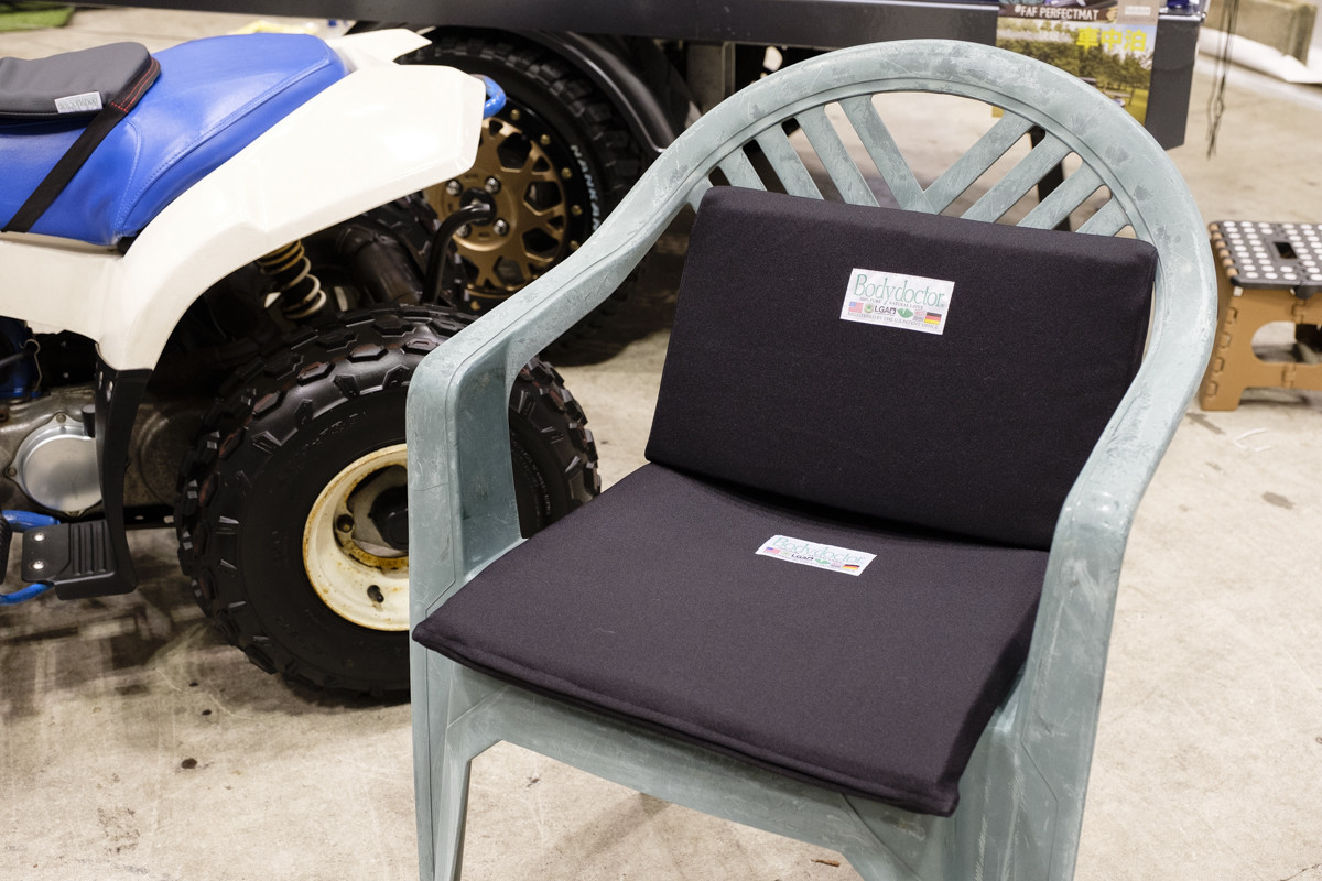 千葉県のショップ、Forest Autoが展示していたキャンピングカーは、ホンダN-VANベース。オリジナルの「FAFリフトアップスプリング」は+5㎝リフトアップでき、悪路走破性と快適な乗り心地を実現。軽バンの中でも最高のスペースユースリティも確保しています。FAFフロントバンパーガードやFAFヒッチメンバーも装着。また、医療用床ずれ防止マットの「ボディドクター」とFAFのコラボ商品も展示。100%天然発泡ゴムの正反発マットが快適で、車中泊の概念を覆します。このマット、普通の椅子にも使えます!