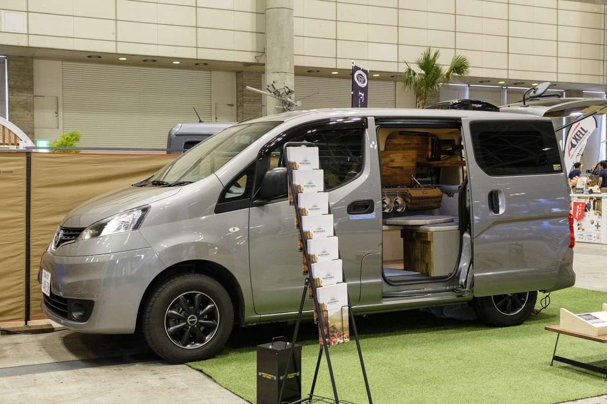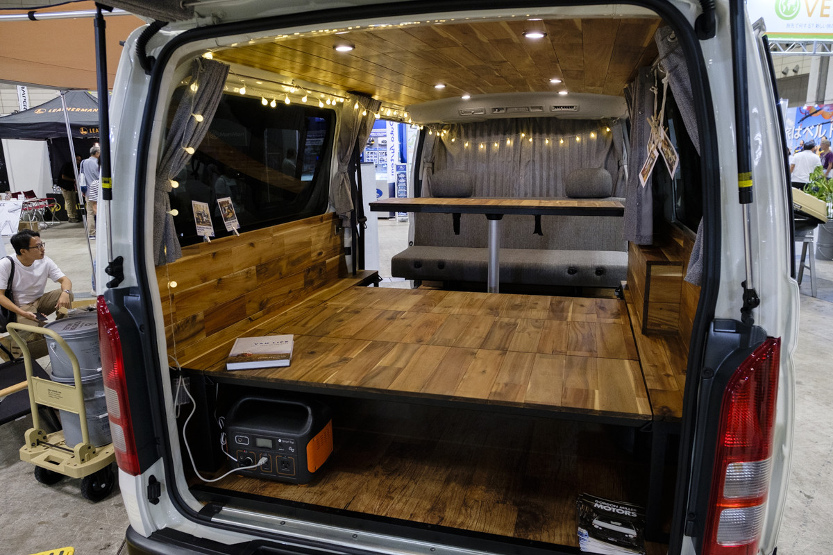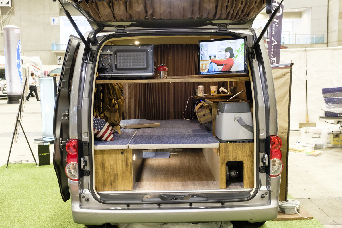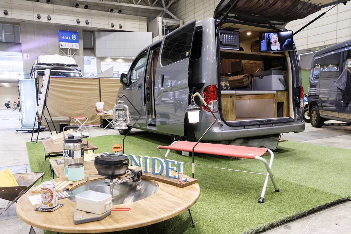 茨城県のショップ、アールブイランドが展示していたのは「FLAGSTAFF E-PRO E16TH」。同車両はバイクなどを積み込める、遊びの最前線に立つユーザーのためのベースキャンプです。キッチンやトイレ&シャワールームといった基本的なキャンピング設備に加え、電動サイドオーニング、ソーラーパネルも標準装備。そして、充実したマルチメディア機器も魅力。E16THは遊びの相棒、秘密基地、ガレージなど使い方次第で「アソビタオセル」最高のパートナーです。価格は426万8000円(税込)〜。