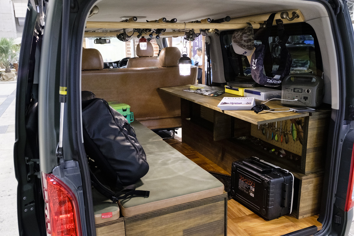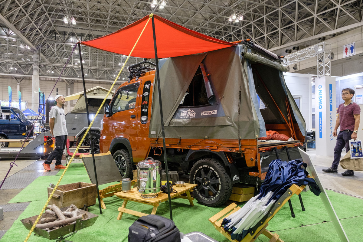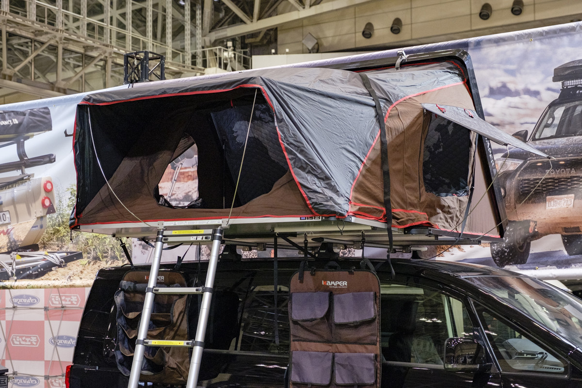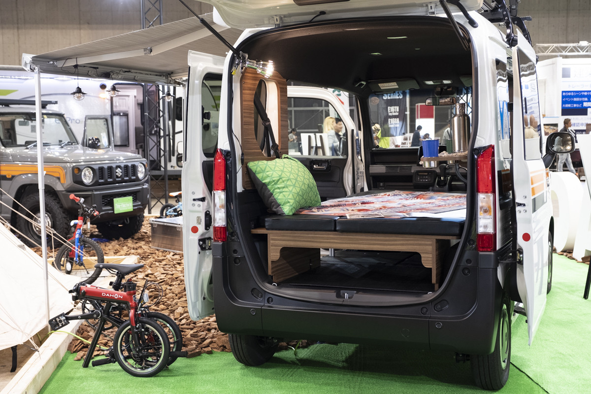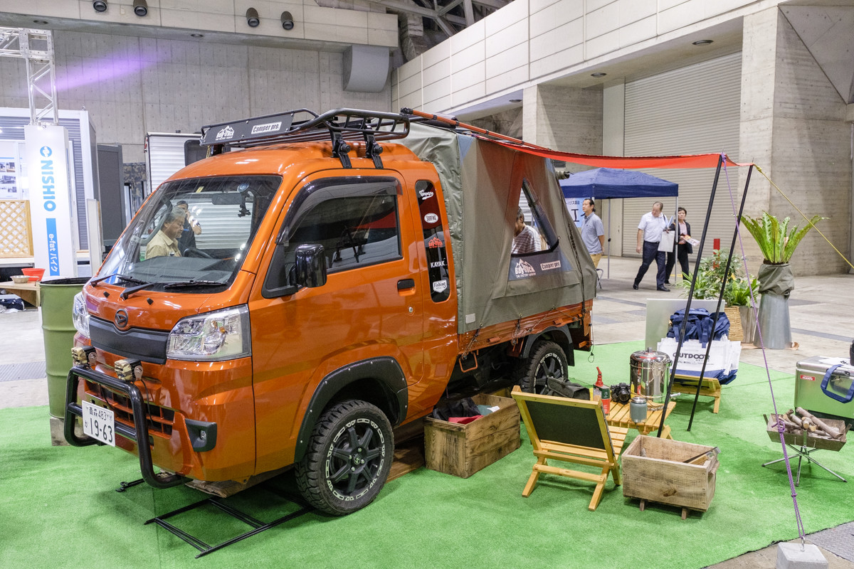 茨城県のショップ、アールブイランドが展示していたのは「FLAGSTAFF E-PRO E16TH」。同車両はバイクなどを積み込める、遊びの最前線に立つユーザーのためのベースキャンプです。キッチンやトイレ&シャワールームといった基本的なキャンピング設備に加え、電動サイドオーニング、ソーラーパネルも標準装備。そして、充実したマルチメディア機器も魅力。E16THは遊びの相棒、秘密基地、ガレージなど使い方次第で「アソビタオセル」最高のパートナーです。価格は426万8000円(税込)〜。