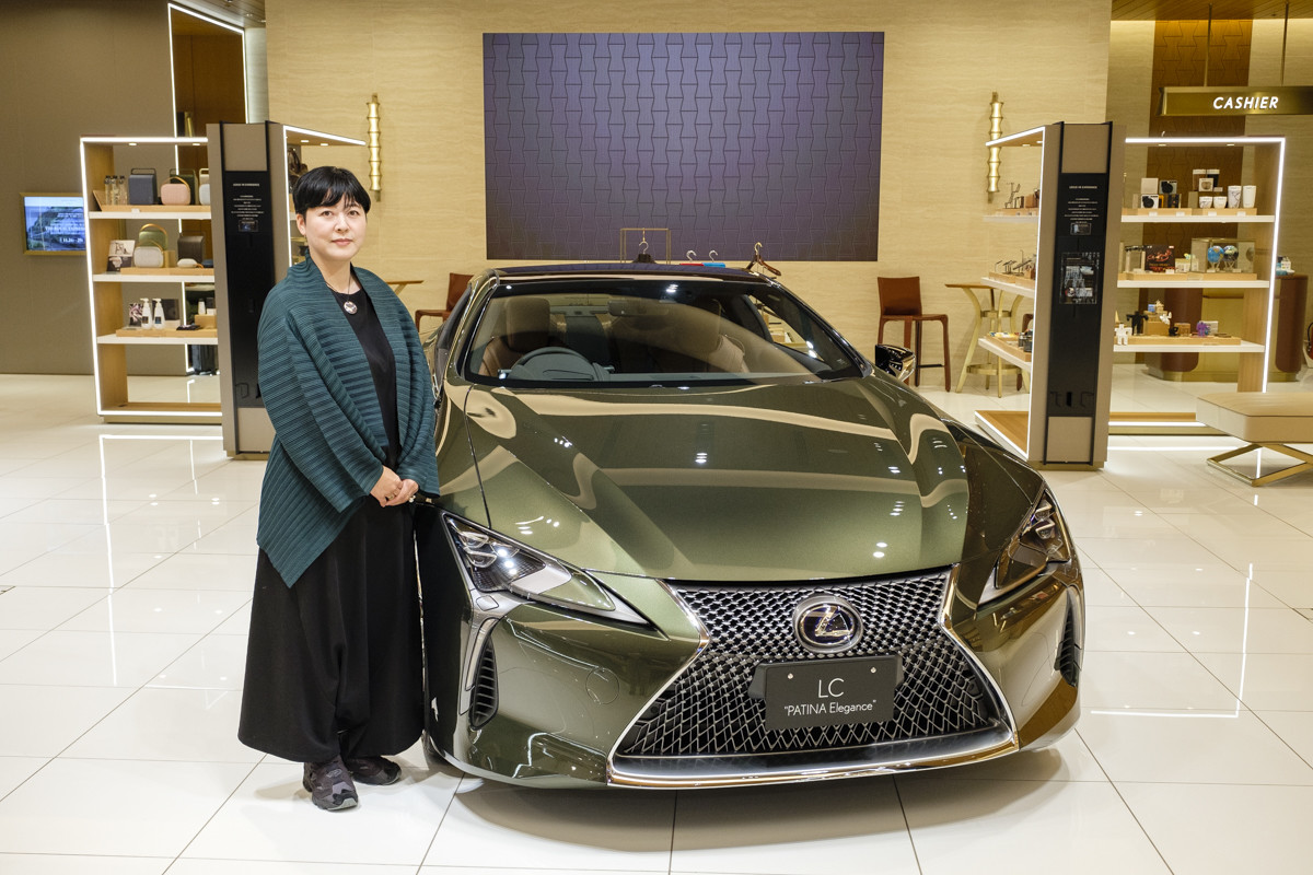 LCは言わずとも知れたLEXUSのフラッグシップクーペ。前後のボリュームたっぷりのフェンダーは一目見ただけで圧倒的な存在感を醸し出しています。そのLCの特別仕様車に採用されたカラーは新規設定した「テレーンカーキマイカメタリック」。宍戸さんは「今回は、使っていくほどに、お客様とクルマとの愛着が深まることをテーマに、それをエレガントな領域まで昇華させて日本文化固有の“わびさび”を感じさせるものとしました」と、LEXUSの従来とは異なる発想の下で生み出されたカラーリングであることを明かしてくれました。