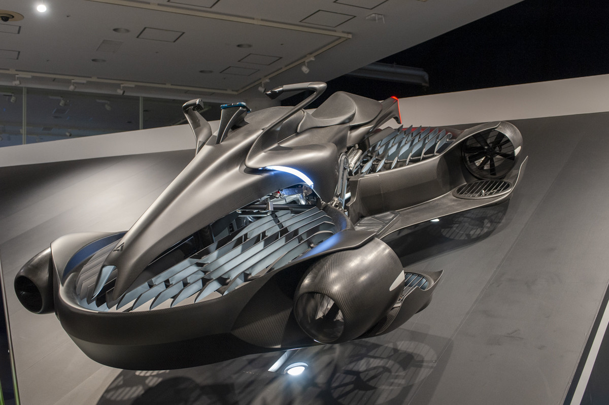 2020年に発売を予定しているホバーバイク。ガソリンエンジンにより駆動されるメインのプロペラで浮上し、ドローンのような電動モーター駆動の四隅のプロペラで推進力を得、姿勢制御をします。法律の問題などを含め、一般公道での実用化にはまだ数年が掛かりそうですが、浮上することによるメリットも期待されています。単に乗って楽しむモビリティではなく、災害時にタイヤ付きの乗り物では走破が難しい環境などでのモビリティ機能も新たな可能性を示しています。