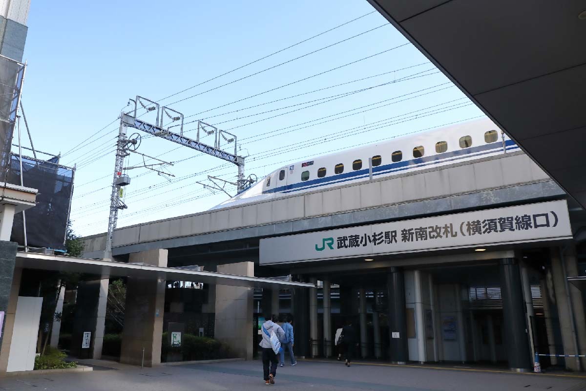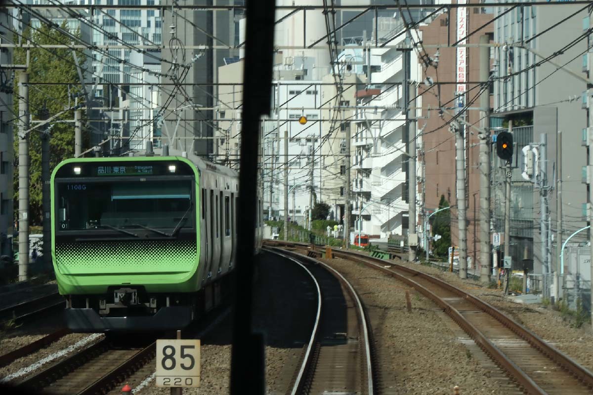 念のため確認しておこう。上り電車は東海道新幹線と平行して走る。次の西大井駅までは、東海道新幹線と横須賀線(品鶴線)がほぼ同じ高さを走る区間があり、電車のすぐ横を東海道新幹線の車両がすれ違っていく。並走する新幹線もあるが、速度を抑えて走っていても、さすが新幹線は速いと感じられる。