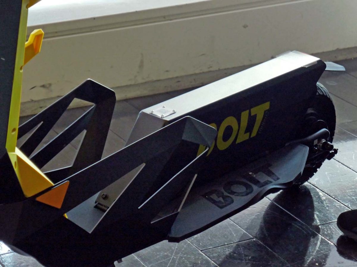 発表した電動キックボードは、「ボルト・チャリオット」「ボルト・ワン」の2タイプです。公表されているスペックは、「ボルト・チャリオット」が一充電あたりの走行距離55kmでバッテリー装着時の総重量は36kg。カップホルダーや小物入れも備わります。「ボルト・ワン」はバッテリーサイズが少し小さく同走行距離40kmで同重量は20.4kg。最大速度はいずれも約24.1km/hとなっています。