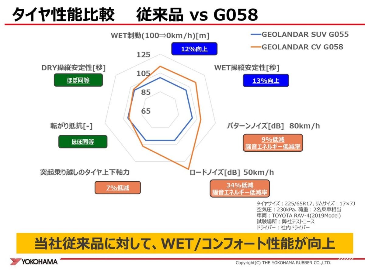 ただ、圧雪路や氷上になるとスタッドレスタイヤほどのグリップ力は発揮できません。とくに凍結路では明らかな差が出ます。一方、オールシーズンタイヤということで一年中履きっぱなしになるわけですが、グリップ力が高まることで、たとえばエコタイヤに比べれば燃費面で不利になることは考えられます。ただ、ロードノイズについては「この手のタイヤとしてはかなり低い」(開発担当者)とのコメントを頂きました。発売は2020年1月。それまで期待して待ちたいと思います。