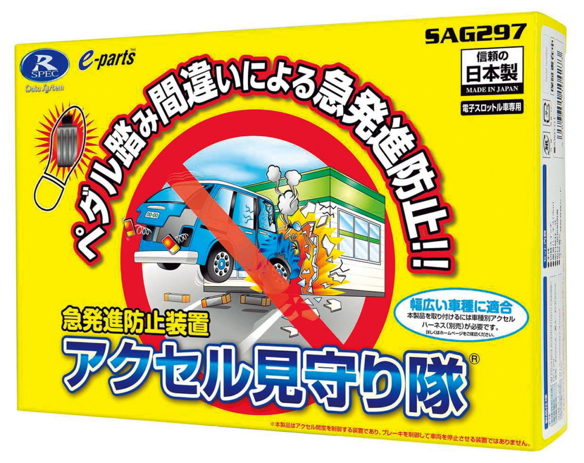 最近多くなっているのがアクセルとブレーキの踏み間違い事故。そんなミスをカバーしてくれるアイテムがコレ。駐車する際にありがちな、10km/h以下の走行時の急なアクセル操作に反応して急発進を防止します。