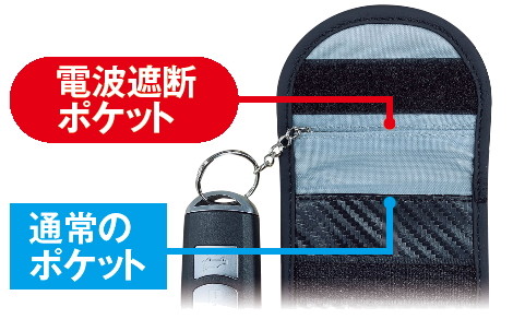 電波を遮断するポケットと通常のポケットという二重構造が特徴。ドライブに出かけるときは通常のポケットに入れておけば、スマートキーの便利な機能を利用することが可能です。