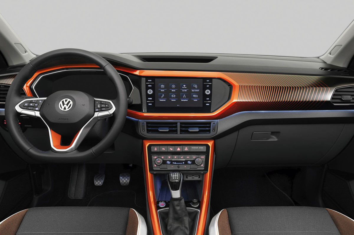 どちらも直線的で視界が広いのが特徴。「T-Cross TSI 1st Plusデザインパッケージ」では、インテリアカラーにオレンジなど3色を選択可能です。