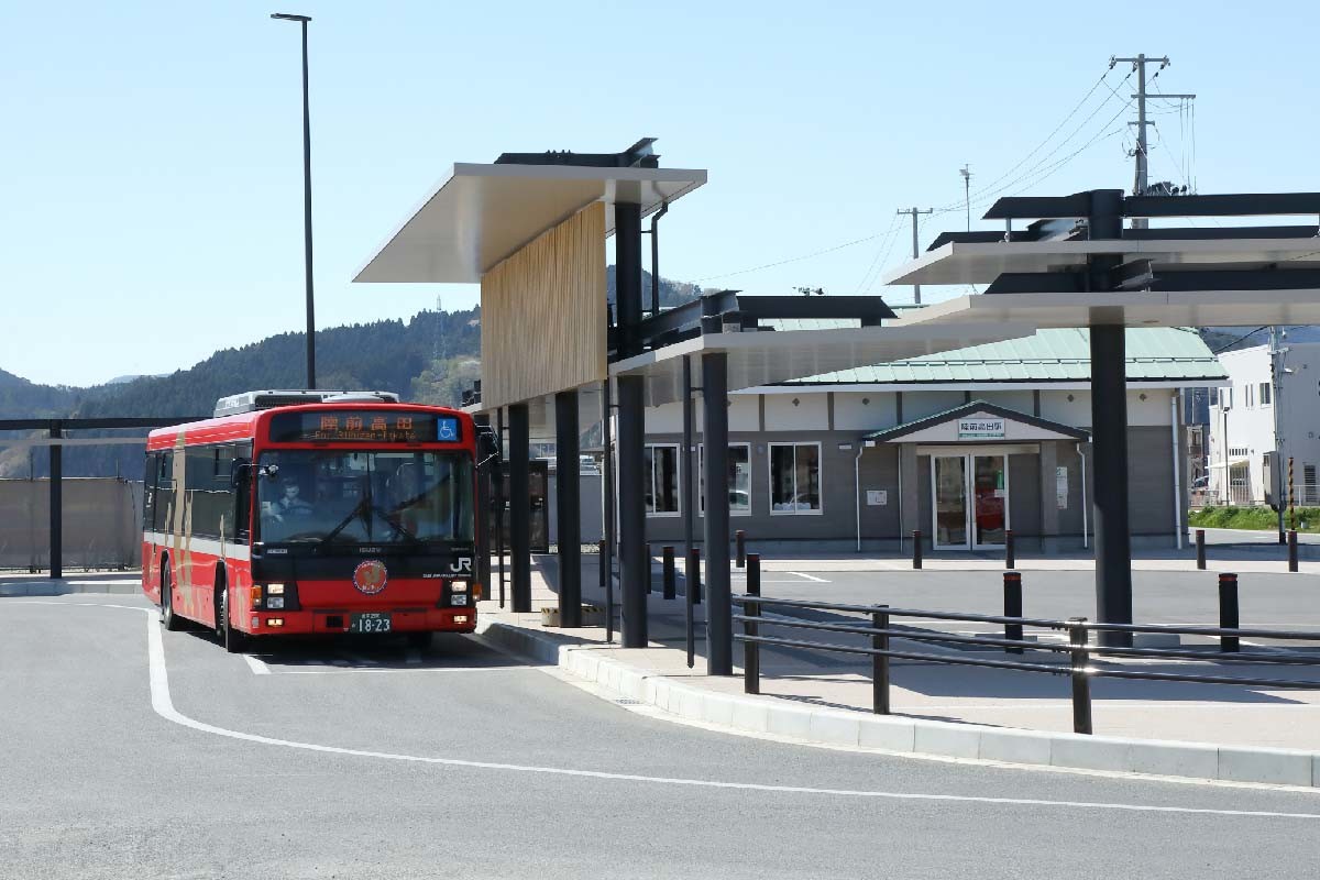 前述したように、東日本大震災で路線の復旧が困難とされた区間は、現状、BRT(バス・ラピッド・トランジット)という形態で鉄道に代わる専用バスが運行されている。BRTバスが走れるように元線路を専用道路として復旧し、復旧が難しい区間は、公道を迂回して走る。BRTのバスが走るのは気仙沼線の柳津駅〜気仙沼駅(55.3km)、と大船渡線の気仙沼駅〜盛駅間(43.7km)だ。