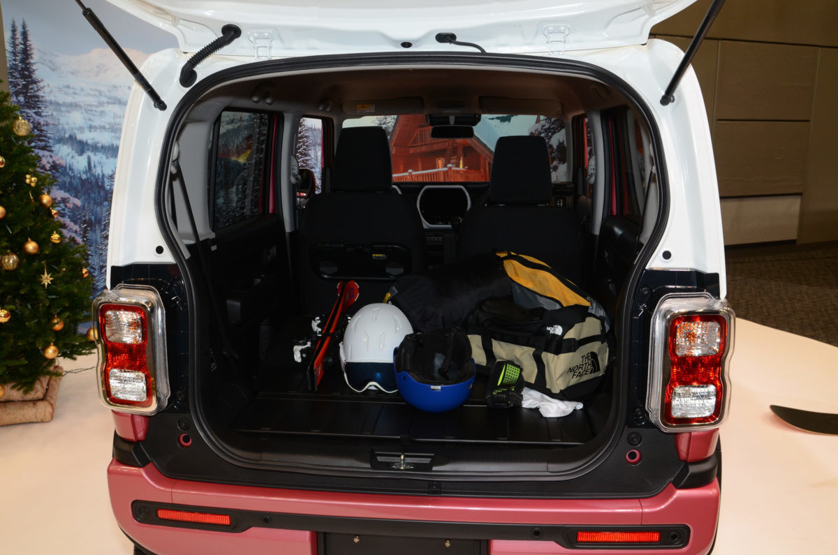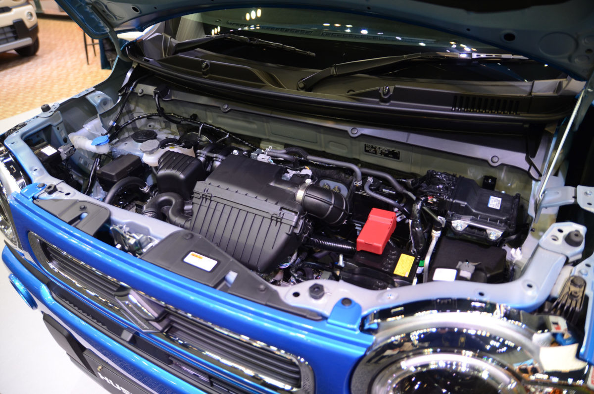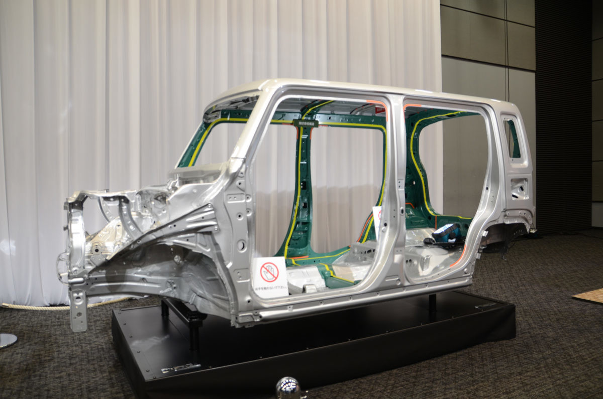 ボディは、新世代プラットフォーム「HEARTECT(ハーテクト)」。センターピラー、サイドドア、バックドアに「環状骨格構造」、ボディのスポット溶接部にスズキ初の「構造用接着剤」などを採用。軽量、高剛性を両立させるとともに、軽初(スズキ調べ)のこもり音&雨音を低減する「高減衰マスチックシーラー」、防音材や遮音材を最適に配置することで、静粛性を高めています。