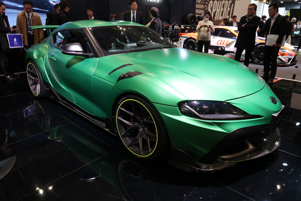 TRDブースでは2台のニューモデルがアンベールされました。向かいにあるGRブースでのアンベールイベントを待って、その後にベールが拭われたのが「トムス スープラ」と「トムス センチュリー」でした。レジェンドグリーンと呼ばれるマットグリーンメタリックに塗られ、低くワイドに構えるトムススープラは、流石にスープラと共にレースシーンを戦い抜いてきた歴史を感じさせます。ベース車両+120馬力を実現した460馬力を発揮する高バランスでのチューニングエンジン、極限のスポーツ走行と、コンフォータブルな普段使いを実現できるようリセッティングされたサスペンション。単に硬い、柔らかいということだけでなく、サスペンションの動きを制御するセッティングがなされ、室内でその調整が可能となっています。また、トムススープラは徹底的なテストによって開発されたコンプリートカーです。そのクォリティには各開発スペシャリストの人となりが現れています。