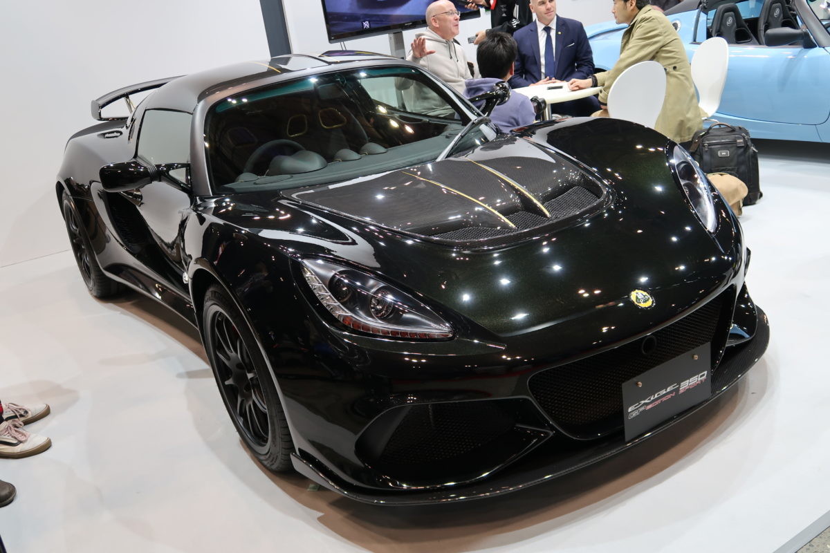 トムスの隣のロータスブースでもベールに包まれた1台がそのベールを脱がされるのを待っていました。ロータスのF1で1972年から1986年まで採用されていたカラーリング、JPSカラーをイメージし、EXiGE 350 SPORTのGP EDITIONとして20台限定のスペシャルモデルとして発表されました。このカラーリングには、多くの勝利、コンストラクターズ/ドライバーズタイトルとロータスの確固たる存在をアピールした歴史があります。