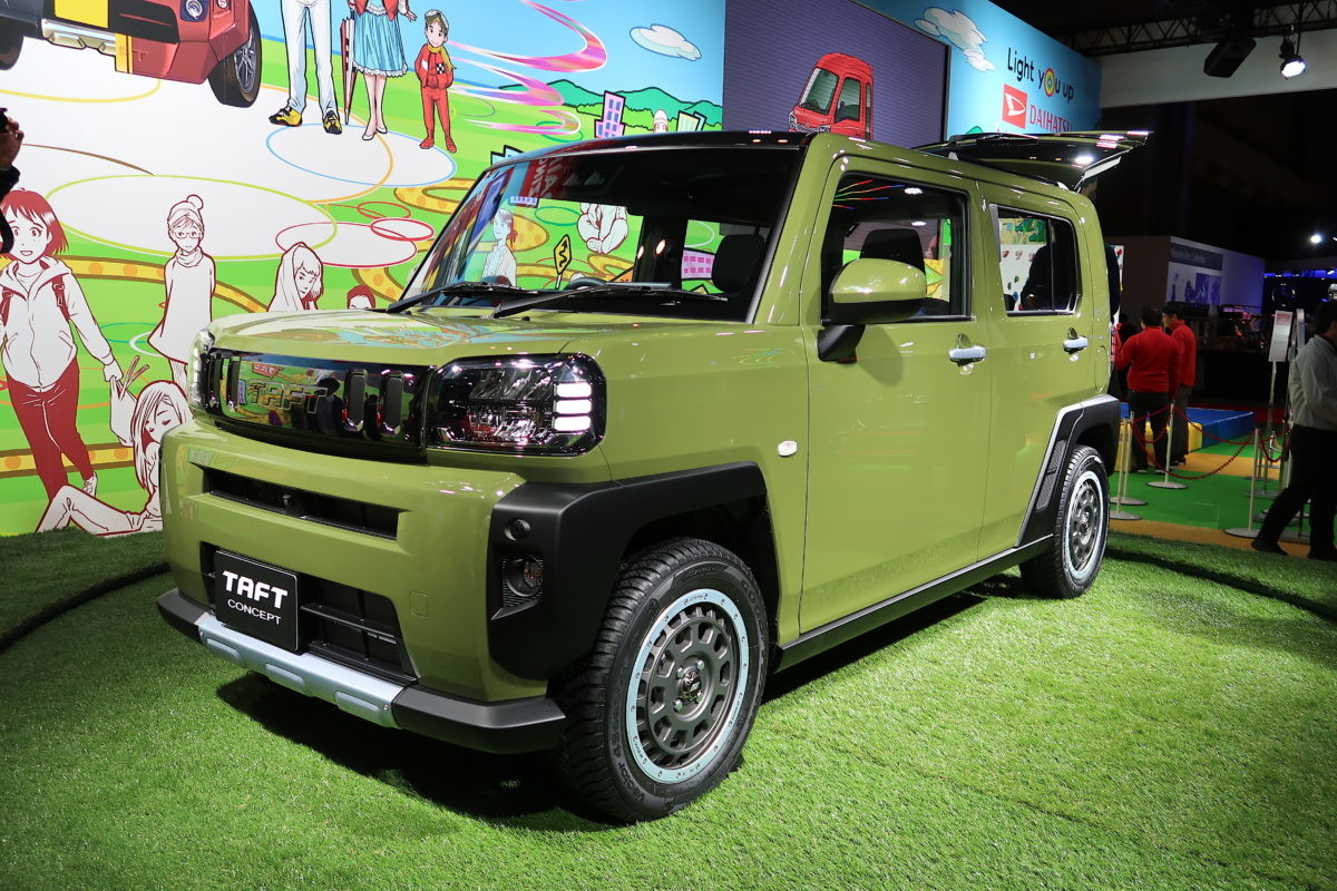 会場の連絡通路を抜け、ダイハツブースが見えた時、ブース全体から何やら楽しい雰囲気が伝わってきました。大きく目立つクルマがあるわけではないブースなのですが、自由な感じが伝わって来たのが不思議な感覚でした。車名が復活したロッキーに加え、センターステージには軽で楽しく遊ぶ「タフトコンセプト」が参考出品されました。このモデルもこの場が世界デビューとなりました。打倒スズキハスラーという意気込みがありありと感じられるこのコンセプトモデルは、ほぼこのままの状態で今年中に発売されそうだとのこと。ガラスルーフなどの仕様もそのままで登場しそうなので楽しみです。