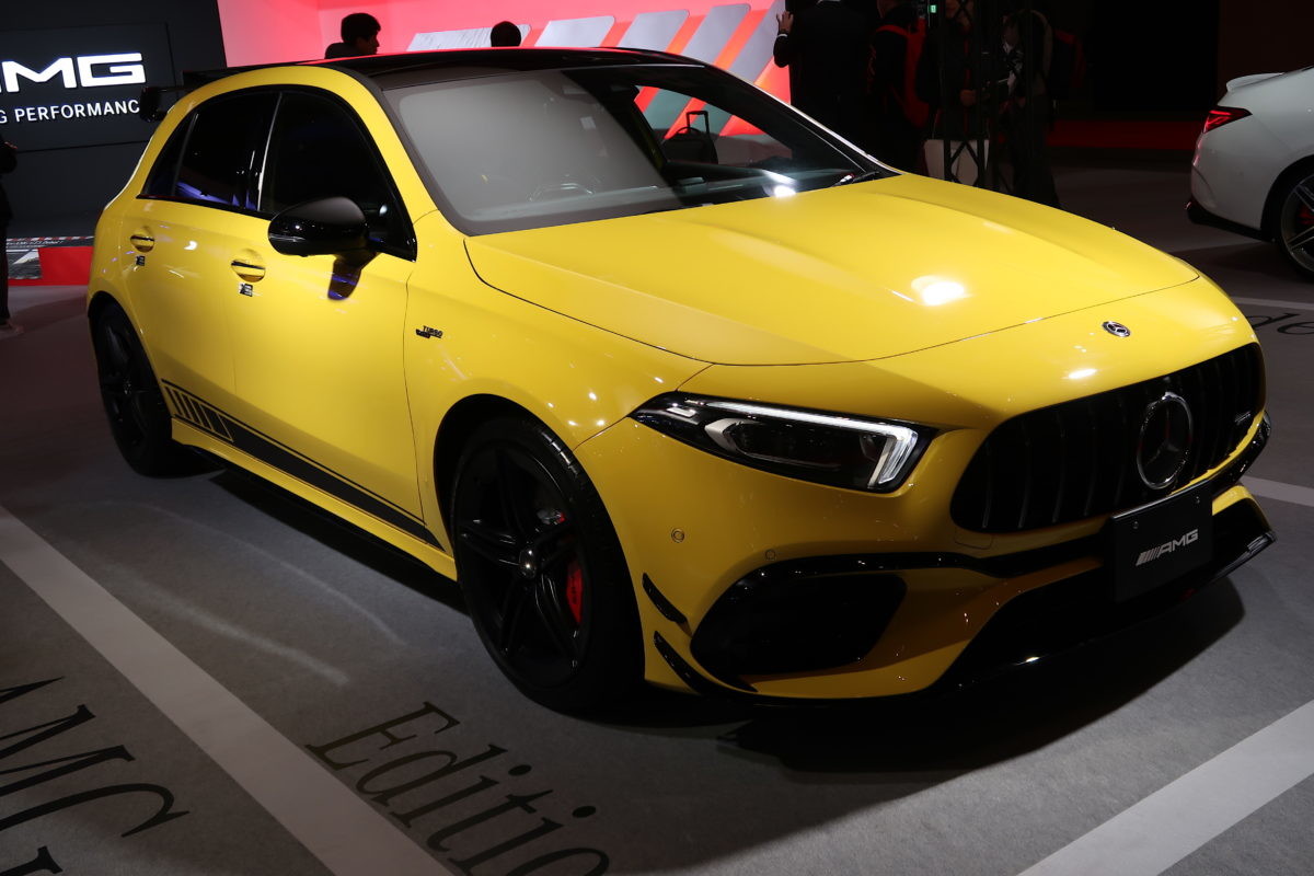 イエローが鮮やかな「A45 4MATIC+ Edition1」はコンパクトながら最先端レーシングテクノロジー満載のハイパワーエンジン搭載モデルとなります。なんと、1エンジンを1人のマイスターが担当する手組みエンジンを搭載します。2Lの4気筒直噴ツインスクロールターボエンジンから310PS、500N・mのパワーとトルクを発揮します。文字通り熱い走りの期待が高まります。