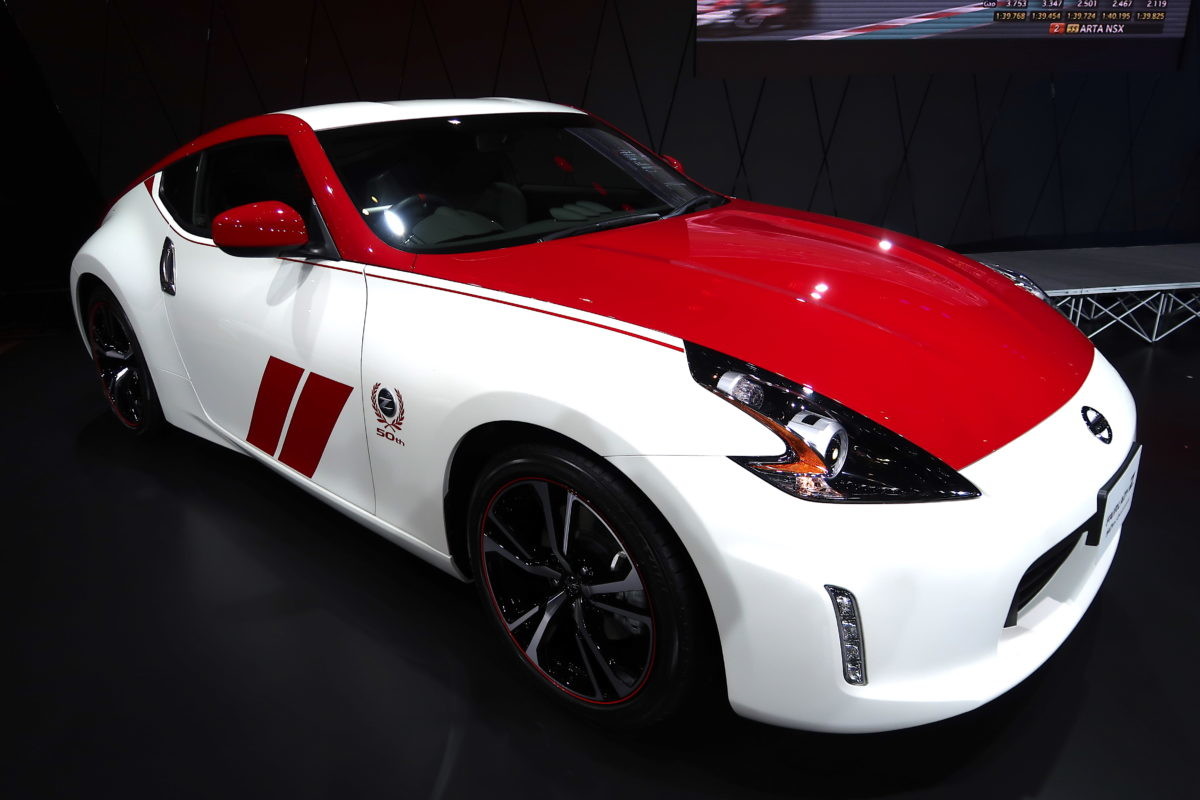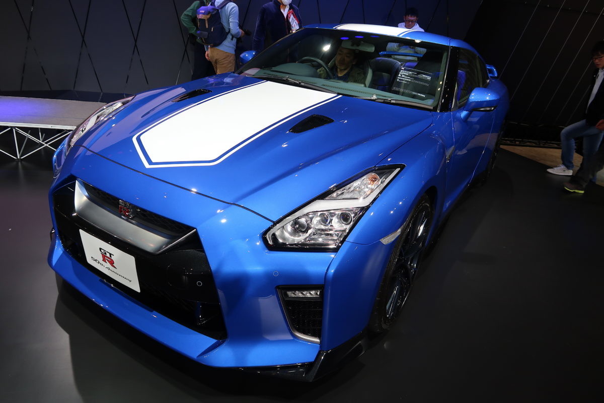 日産ブースからは揃ってデビュー50周年を迎えた「Z」と「GT-R」がステージのセンターを占めていました。初代フェアレディZはデビュー後間も無く、アメリカで爆発的なヒットとなりました。アメリカで大活躍したレースシーンで日産トリコロールカラーをまとった初代240Zのカラーリングをオマージュしたと言えるのがこのZの50周年記念モデルです。
