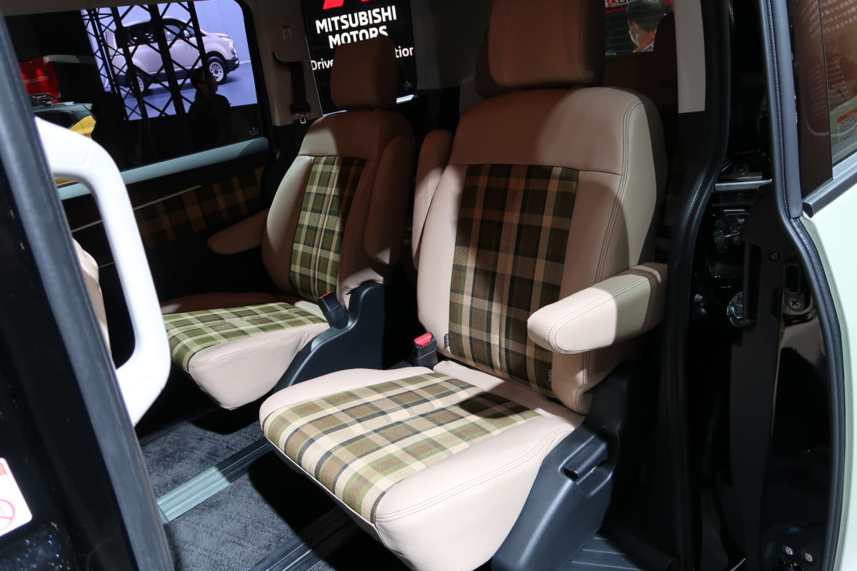 三菱ブースでは異彩を放つデザインのデリカD:5が展示されていました。演出家でありコメンテーターのテリー伊藤氏がプロデュースしたというこの「D:5 eye・キュート」。元々は精悍な顔つきのD:5に大きく丸いヘッドライトが組み込まれ、マットで渋い色合いで塗装。内装にはタータンチェックの特別なシートが奢られているというものです。顔つきが変わることでここまで変化するクルマの珍しいかもしれません。