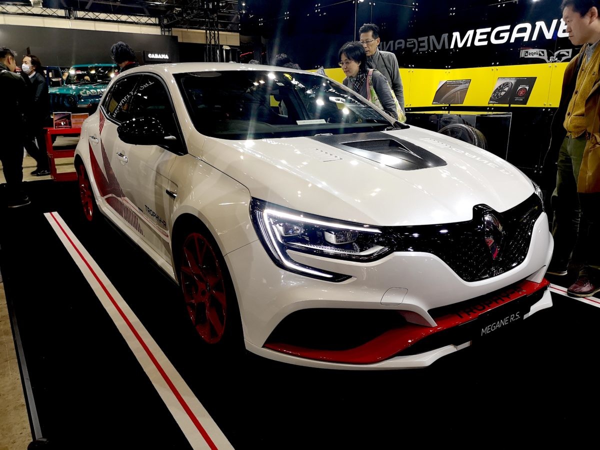 ルノーブースに置かれたホットハッチは外観上「メガーヌRS」なのですが、実はホットモデルトロフィーRです。ラグジュアリースポーツモデルRSをスポーツ走行向けにチューンアップしたトロフィーをさらに大幅に軽量化、アジャスタブルサスペンションやレーシングフィールド向けのブレーキチューンなどを施したスーパーモデルと言えます。