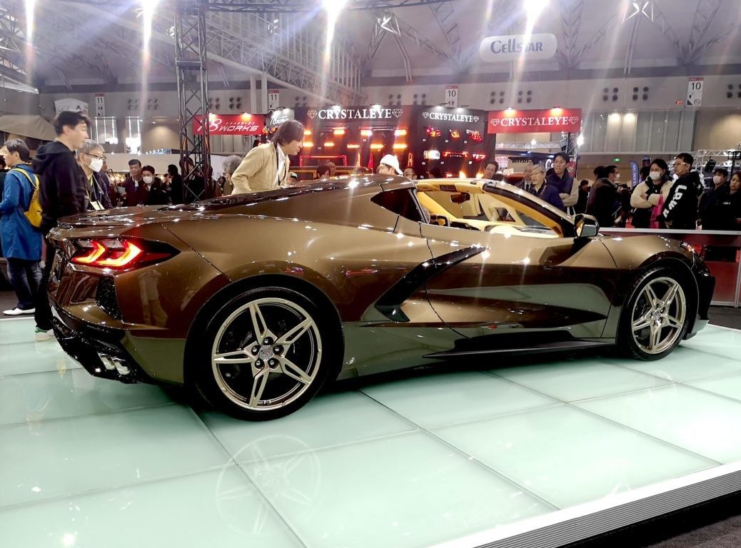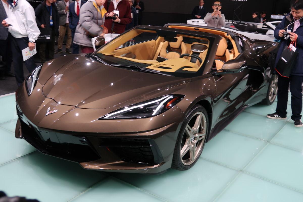 シボレーはその広いブースに2台のオープンカーを用意していました。白い「カマロ」とブラウンメタリックの「コルベット」です。ニューコルベットはついにミッドシップマウントのエンジンとなり、スーパースポーツとしての性能に格段の進歩を遂げました。