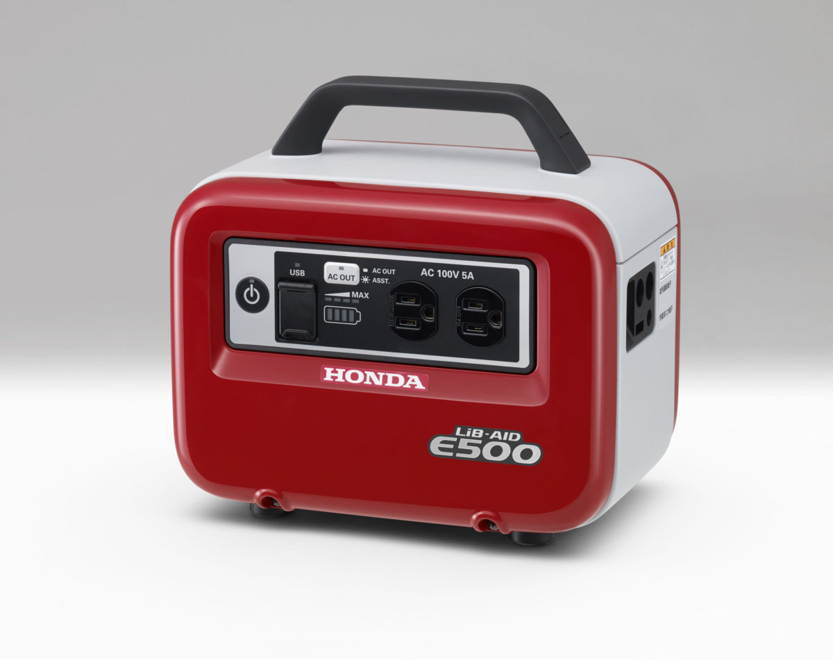 最近は車内で100Vの家庭用電源が使える車種も増えているが、ポータブルバッテリーを用意しておけば、エンジンを停止したまま電気製品が使える。写真はホンダのLiB-AID(リベイド)E500で、電気毛布なら夜通し使えるくらいの容量を持つ。