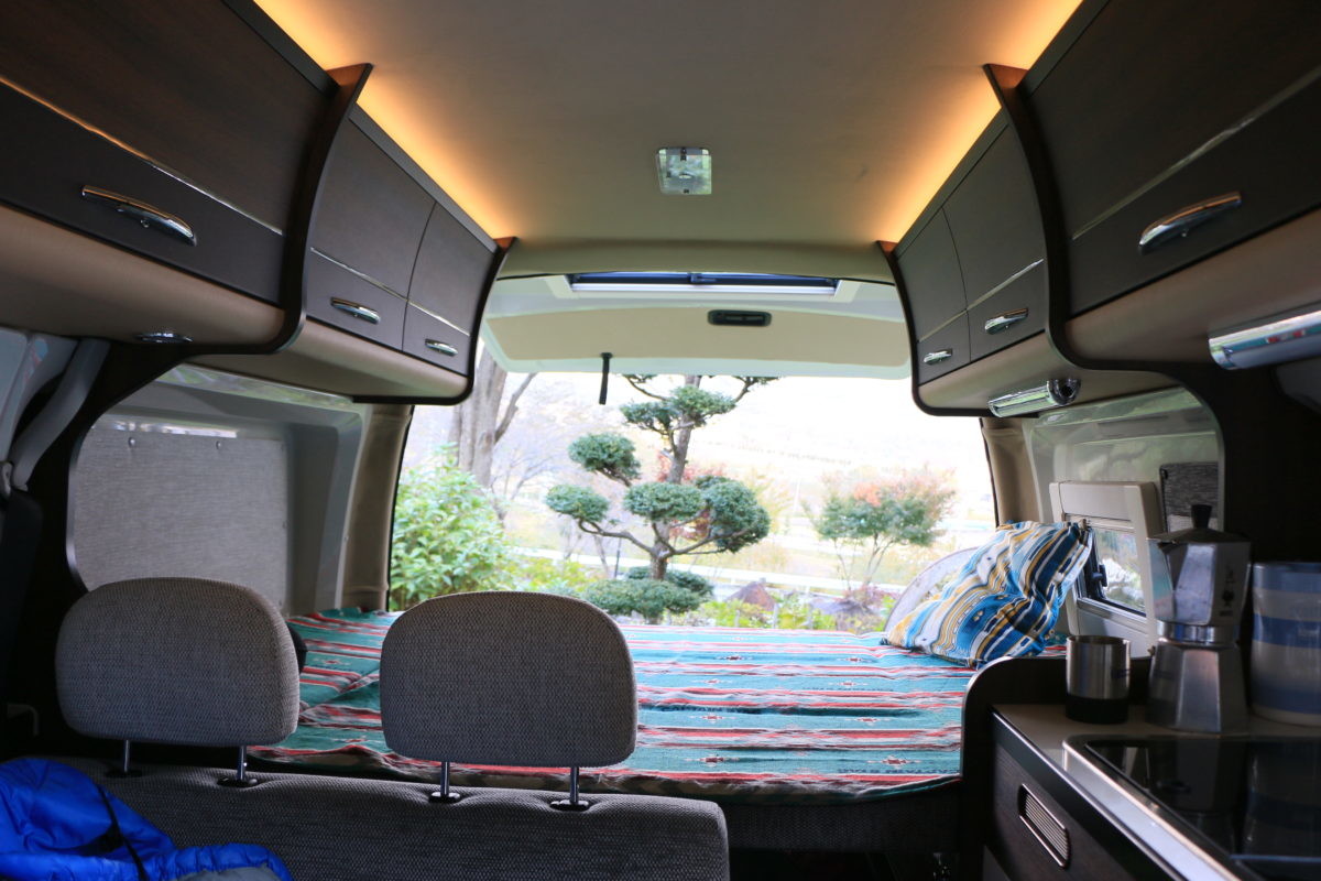 ↑車中泊用のオプションも豊富に用意され、快適性を高められるのもポイント