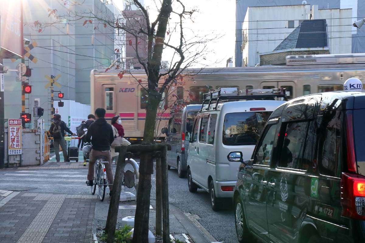 同区間は朝夕の列車本数が多く、25か所すべての踏切がピーク時1時間のうち40分以上閉まる「開かずの踏切」となっている。国土交通省では2016年4月12日に、改正踏切道改良促進法に基づき、全国58か所を「改良すべき踏切道」に指定した。京王線の笹塚駅〜仙川駅にある25か所すべてが、この改良すべき踏切道に指定されている。厳しい現実がこの路線にはあるわけだ。