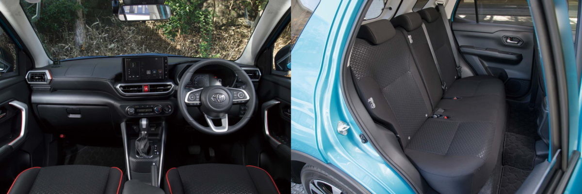 全高が低いのでロッキーより頭上空間は少々タイトですが、高い着座位置をはじめとしてSUVらしさは十分。ポップな色使いながら、緻密さも兼ね備えた質感の高い作りも魅力です。