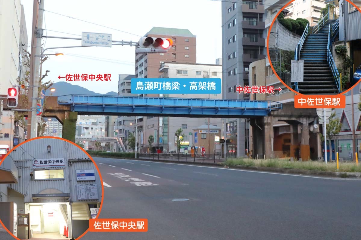 松浦鉄道の伊万里駅(西駅)を出ると、目の前に伊万里大通り(県道240号線)が貫いている。この通りの向こう側にJRの伊万里駅(東駅)がある。両駅には2階があり、跨線橋(ペデストリアンデッキ)で両駅が結ばれている。2階へのエレベータがあるものの、目の前に駅があるのだから、横断歩道で結んでも良いように感じた。