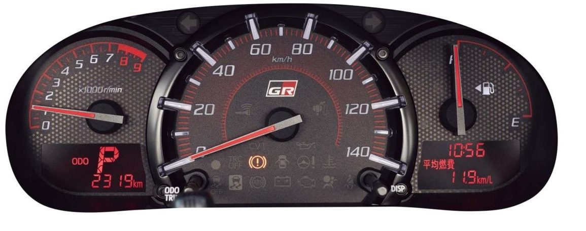もともとコペンのメーターは3眼式でスポーティな雰囲気ですが、このGRでは赤照明の自発光式になっていて高級感も漂っています。さらに、針が赤かったり、GRエンブレムが付いていたり、よりスポーティな雰囲気です。