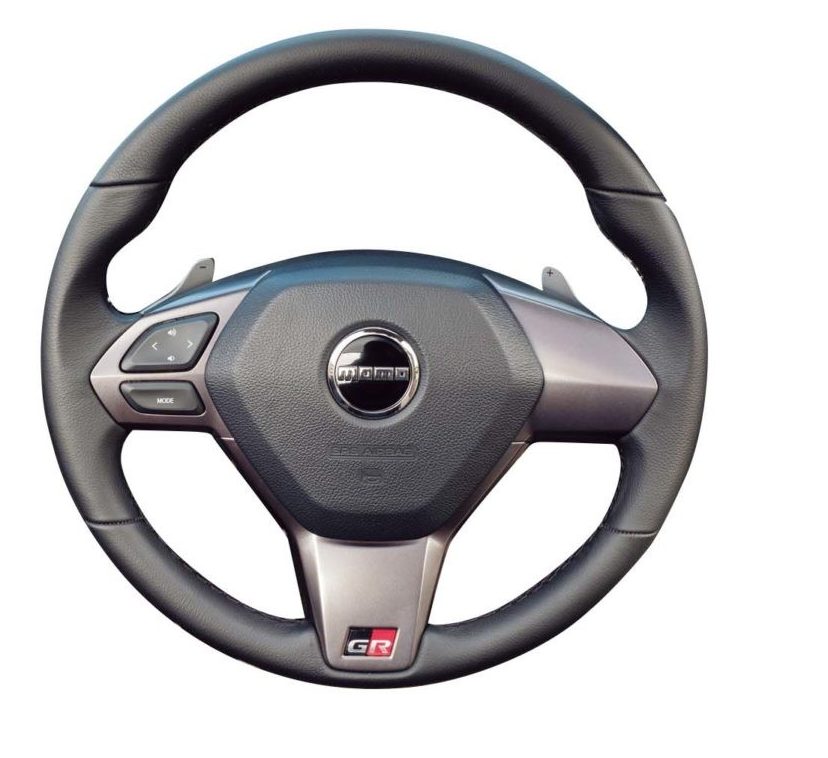 【その4/MOMO社製ステアリング】「GR」エンブレムを装着しガンメタ塗装が施される