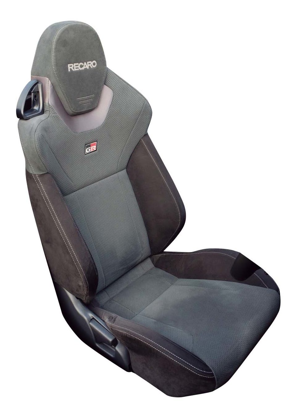 GRスポーツ専用のスポーティなデザイン・配色がなされたシートです。世界的シートブランドのRECARO社製で、身体の収まりもよく、高速コーナーでも横Gで身体を持っていかれることが少なく、安心です。リクライニング機能も付いています。