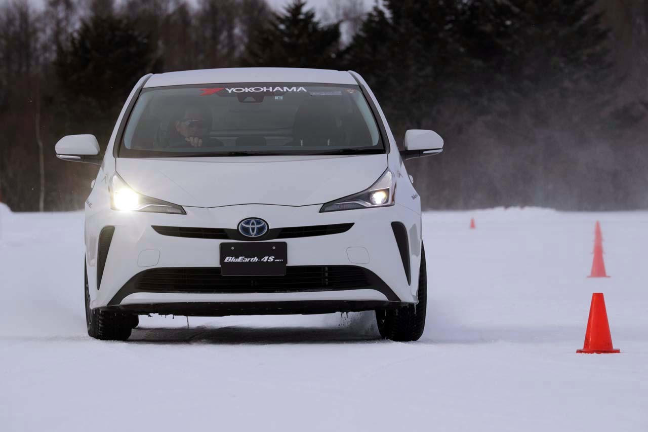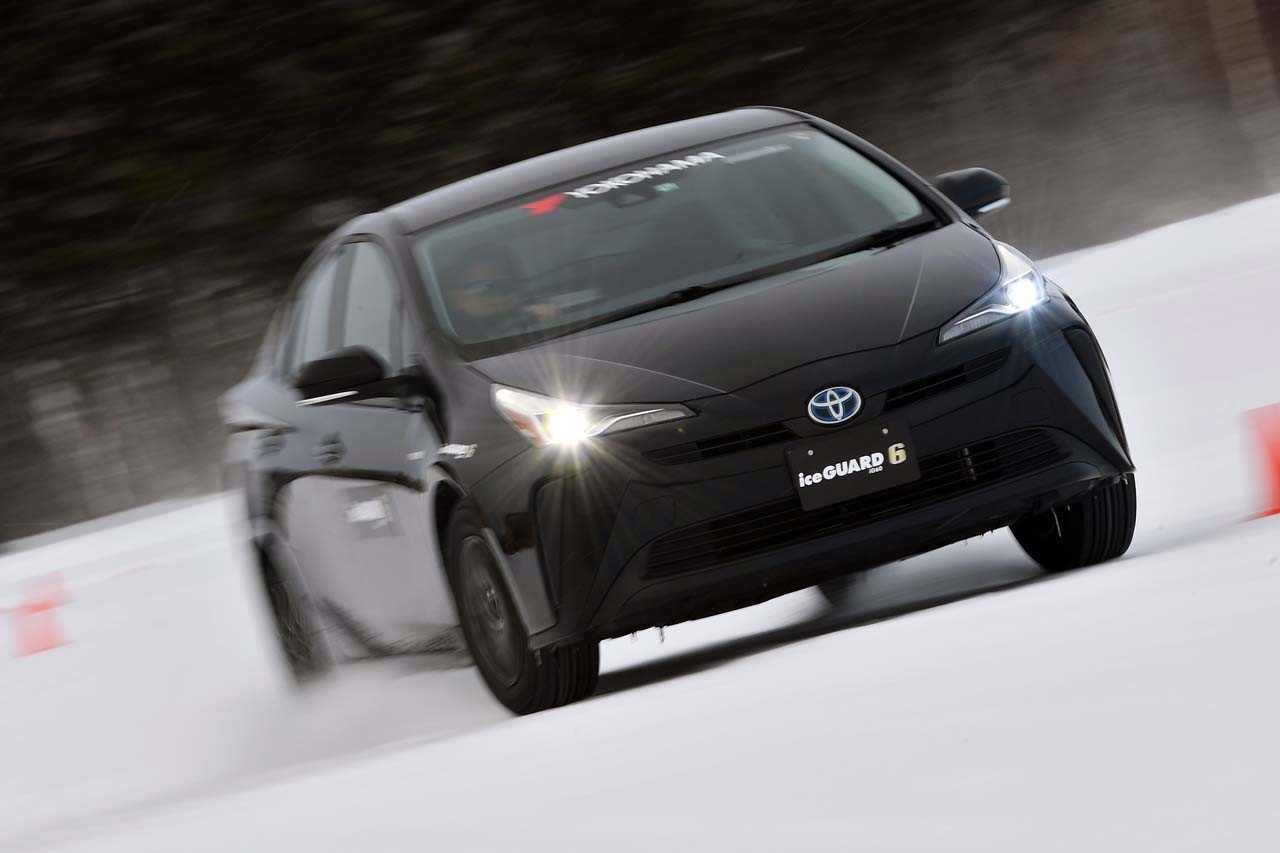 TTCHでは、「アイスガード6」を装着した「トヨタ・プリウス」を使い、屋外の圧雪路と屋内施設の超平滑な凍結面を走行して、それぞれの路面での加減速やスラローム走行を体験。最新スタッドレスタイヤということもあり、ステアリング操作に対する応答性が良好で安心して運転することができました。