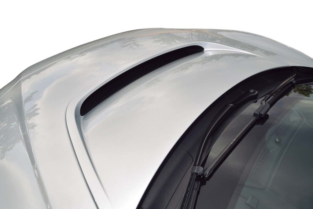 まるでターボエンジン車のようにボンネットに穴が空いていますが、この穴、よく見るとフロントグリルから繋がっています。つまりボンネット下に空気を通すことが目的で、これによって走行中の空気抵抗を低減しているのです。