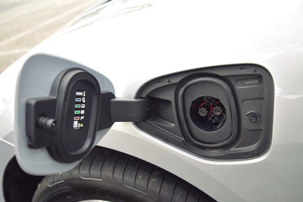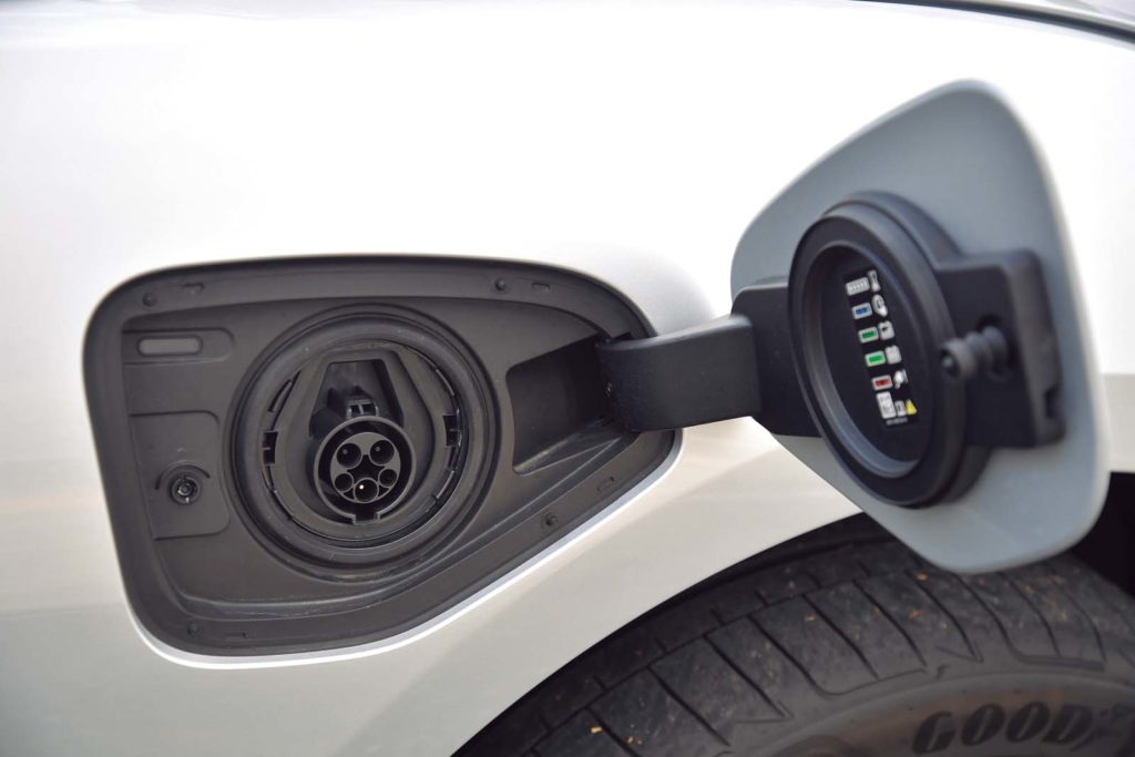 ボディ右側には普通充電のソケット(上)が設置されており、左側には、国産EVでスタンダードのCHAdeMO(チャデモ)規格の50kW急速充電ソケット(下)が設置されています。後者は約85分で80%まで充電できるそうです。