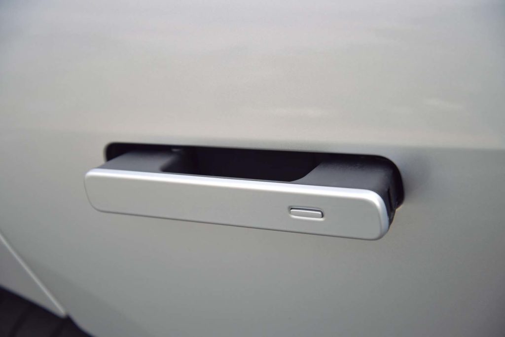 ロックを解除すればボコッと出てきてつかめるのですが、通常時はドアノブがボディに埋め込まれています。これは走行中の空気抵抗を減らすことに貢献しているのです。テスラでも採用されていますが、未来的でイカす!