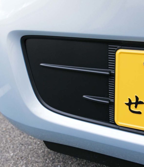 日産がN-BOXに放った刺客がデイズ。日産らしいこだわりに満ちたクルマです。平面になりがちなボディラインにアクセントとしてエッジを効かせています。とくにヘッドライト上のボンネットラインは車幅を確認しやすいという効果があります。