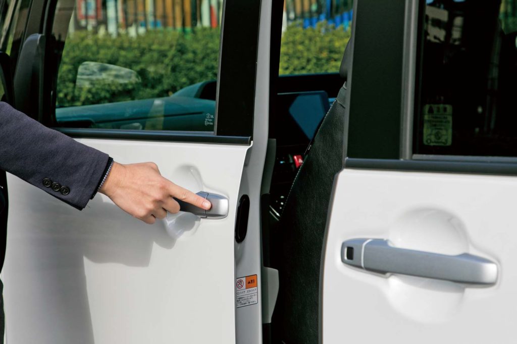 「スライドドアが閉まっている途中でもフロントのドアノブを触れば施錠が完了します。荷物があるときや雨が降っているときはとても便利ですよ」