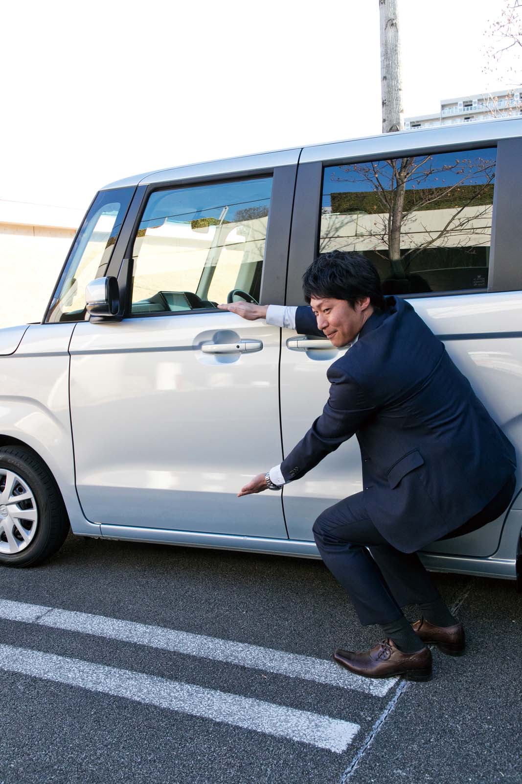 「N-BOXのガラスエリアとボディの比率が実は黄金比になっているんです! 均整のとれたデザインは、多くのお客様に受け入れられています」
