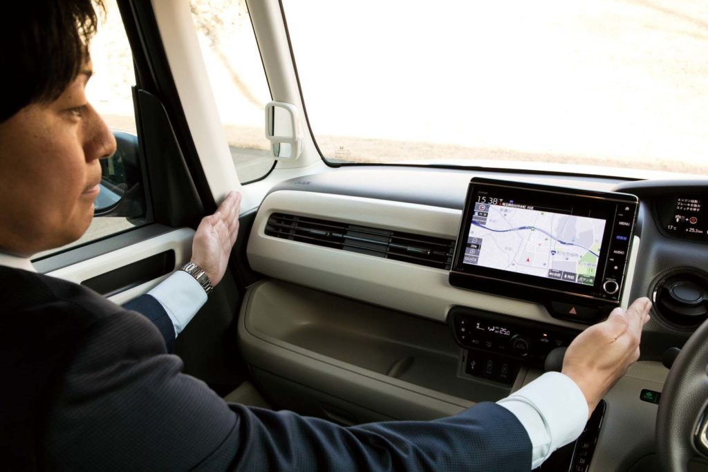 「プロパイロットを軽自動車に初搭載。低速域でもハンドルのアシストが入るので便利ですよ。他の先進予防安全機能も充実しています」