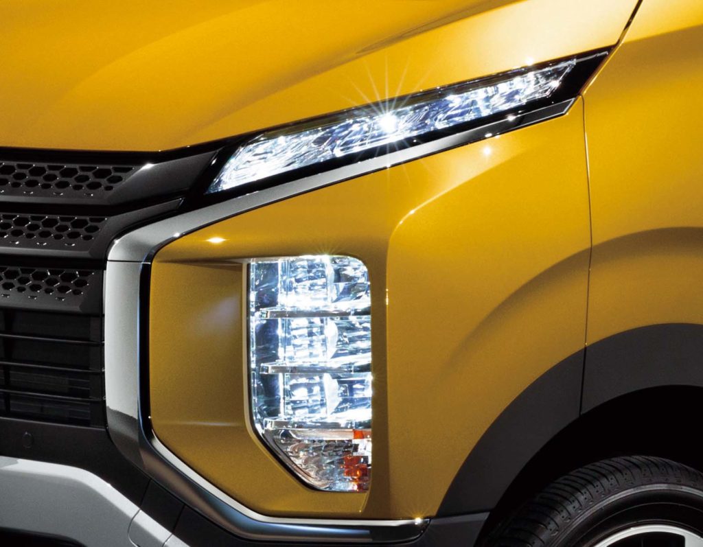 同社のデリカD:5(ディーゼルモデル)譲りの、力強いフェイスが最大の特徴。デザインコンセプト「ダイナミックシールド」を採用し、垂直に通したメッキバーと水平基調のグリルが、SUVらしさを演出します。