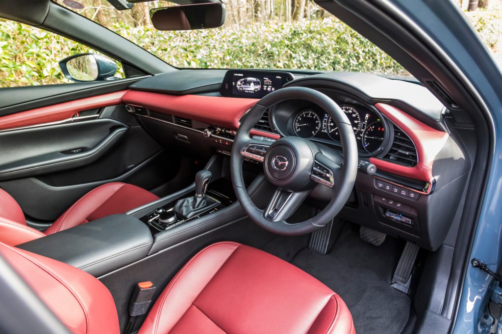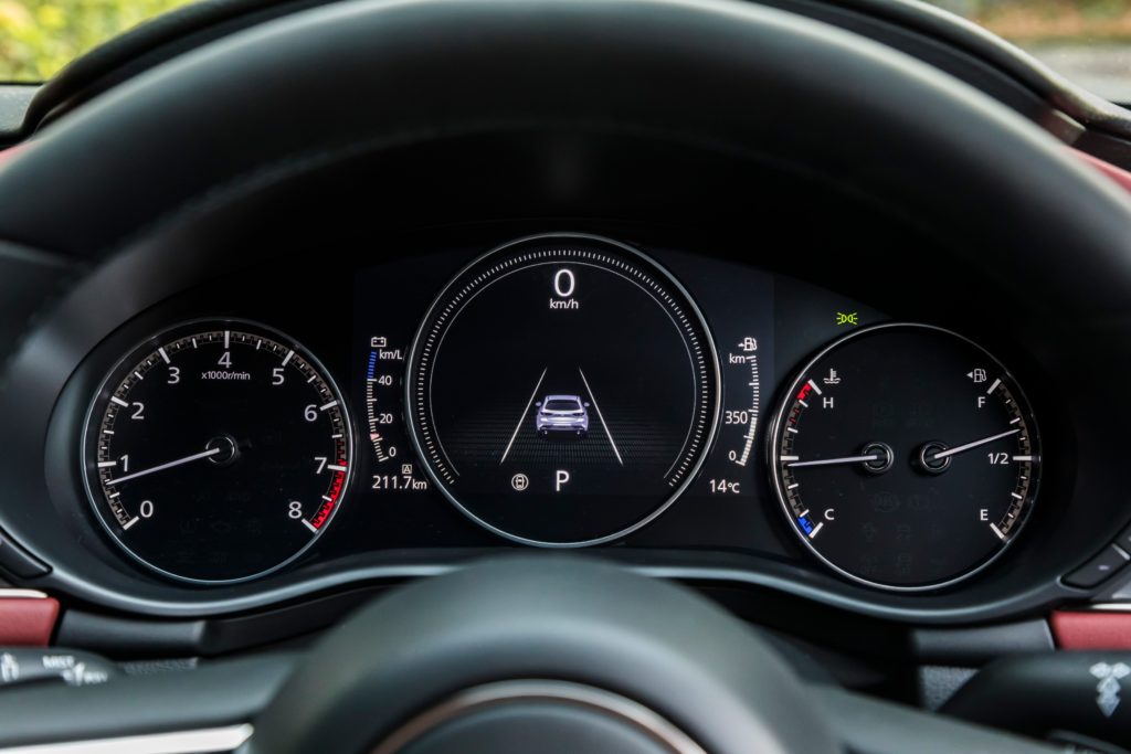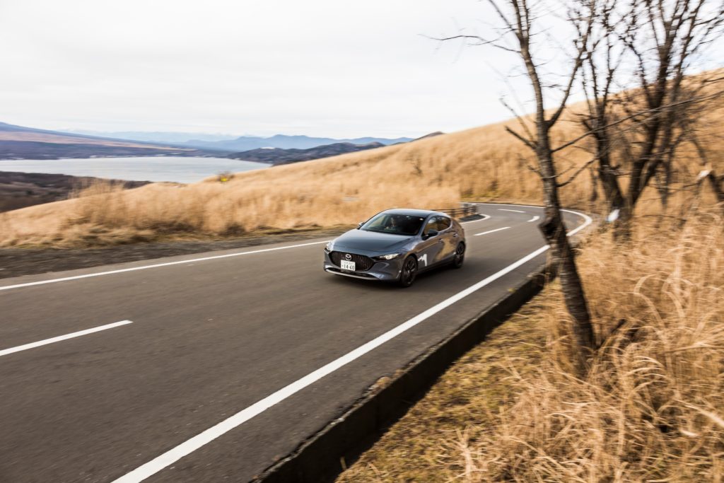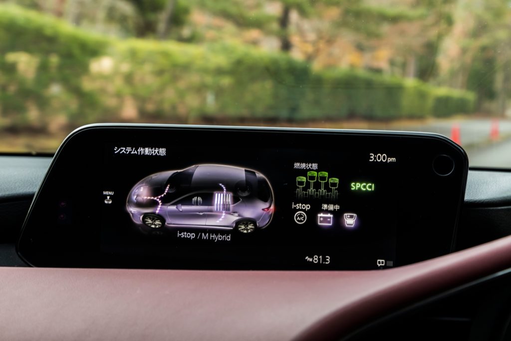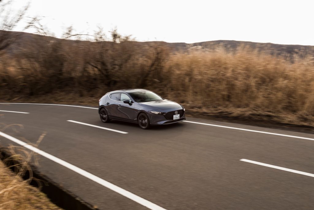 今回の試乗車は、ファストバックのAT仕様でしたが、その走りはスポーティなハッチバックとして納得の出来映えでした。1440kgの車重に対して特別パワフルというわけではありませんが、アクセル操作に対するリニアな反応は自然吸気のガソリンエンジンならでは。低回転からボディをズイッと押し出す今どきのディーゼル的なトルク感こそ期待できませんが、その代わり乗り手が積極的に高回転まで回す歓びが見出せます。また日常域の使い勝手、静粛性は従来のガソリンエンジンと変わりません。圧縮着火状態であることを意識するのは、ディスプレイ上に「SPCCI」を表示させた場合程度にすぎません。