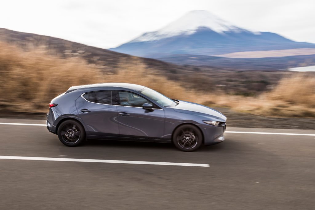 まずは、マツダ3のおさらいから。元々、日本では「アクセラ」と名乗っていたハッチバック&セダンで、欧州のクラス分けに当てはめればCセグメント級。つまり、「フォルクスワーゲン・ゴルフ」や「プジョー308」、日本では「トヨタ・カローラ」あたりが競合モデルとなります。その源流が「マツダ・ファミリア」といえば、ベテランのクルマ好きには位置付けが一層わかりやすいでしょう。