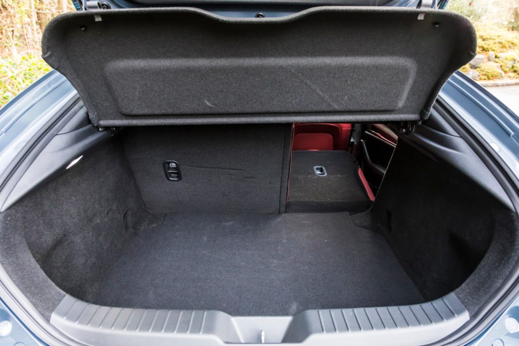 シンプルにして独自のキャラクターを持つ、という点はインテリアにおいても同じ。前述したボディサイズを思うと居住空間、ラゲッジスペースのいずれも特別広い方ではありません。絶対的な空間は十分に実用的ですが、ファストバックの後席については太いリアピラーの影響もあって薄暗く、多少の閉塞感があることも否定できません。