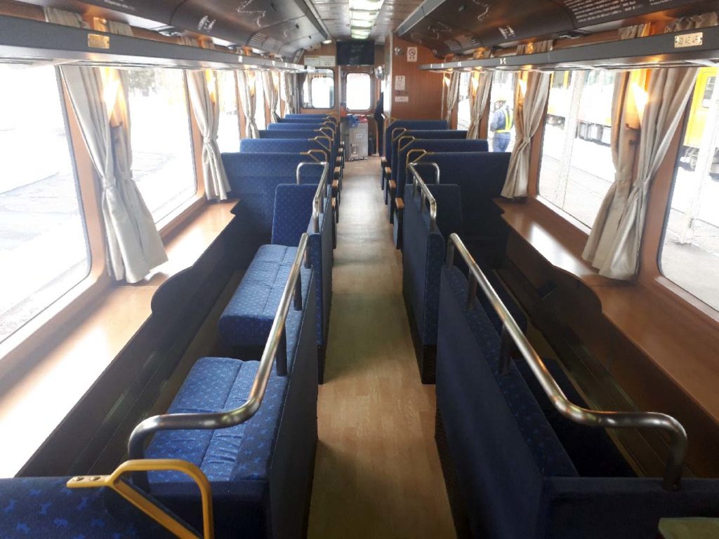 ほか3両は普通車で、2号車が女性専用座席、3号車がリクライニングシート20席とファミリーキャビン(コンパートメント)が2室、5号車はかつての2段式寝台を現代風にアレンジしたタイプで「クシェット」と名付けられた。ちなみに4号車はフリースペースとなっていて、乗客が自由に利用できる。