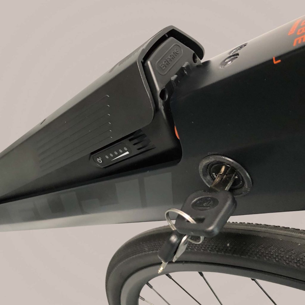 SPEC●フレームサイズ:S、M、L●フレーム素材:6061番アルミニウム●フロントフォーク:カーボン●ドライブユニット:Bafang H-600リヤハブモーター/250W●バッテリー:Bafangインチューブバッテリー/200Wh●アシスト航行距離:50km(MODE 01)●質量:16.5kg