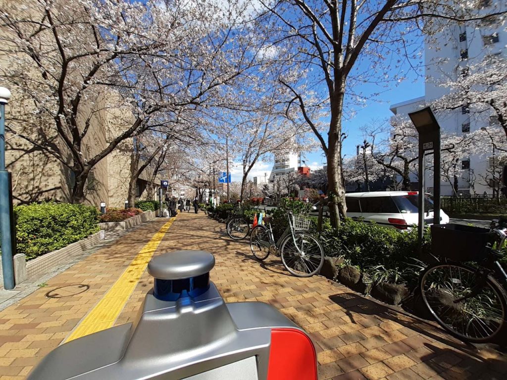 試乗は、小石川植物園にほど近い播磨坂さくら並木を約1キロほど走行することで行われました。当日は少しキツメの北風が吹いていましたが、天気は真っ青な空が広がる快晴。満開となった桜並木の下を気持ち良く走行することができました。