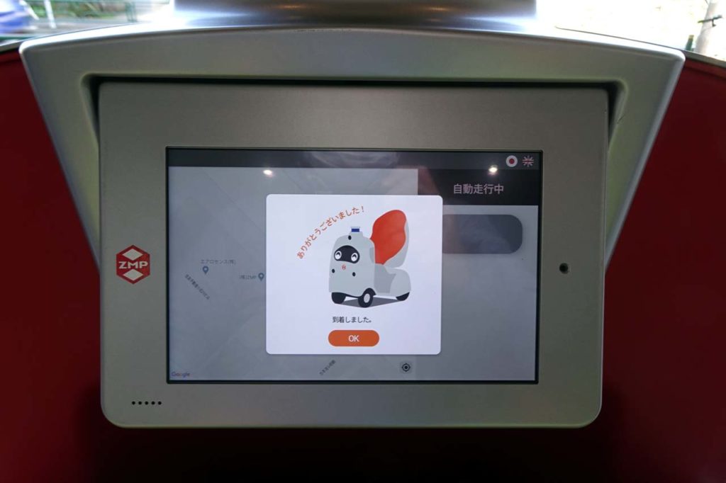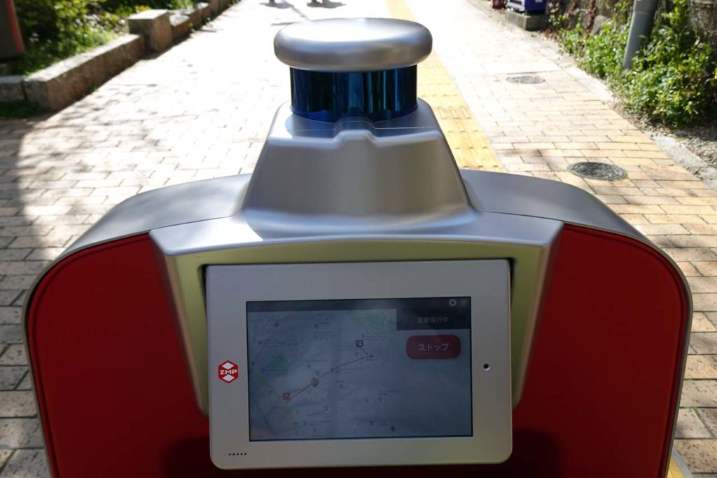 走行中にちょっと違和感があったのは、時折、障害物もないのにカーブを描いて走行することです。これは歩道の周辺にある物体に対して過大に反応してしまったことが原因らしく、同行したZMPのスタッフによれば、認識するパラメーターを調整することで対応できる範囲とのことでした。