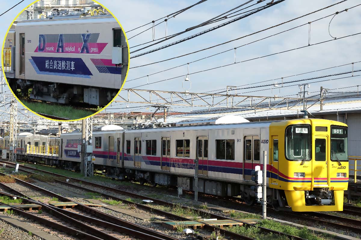 クヤ900形は京王電鉄の軌道と架線を検測する事業用車両で、2007年に新造された。愛称は「DAX」。Dynamic Analytical eXpressの略で、直訳すれば「力強く分析する急行」という意味だろうか。自走はできないため、京王線の主力車両9000系を元にして造られたデヤ901・902形と連結して運行される。