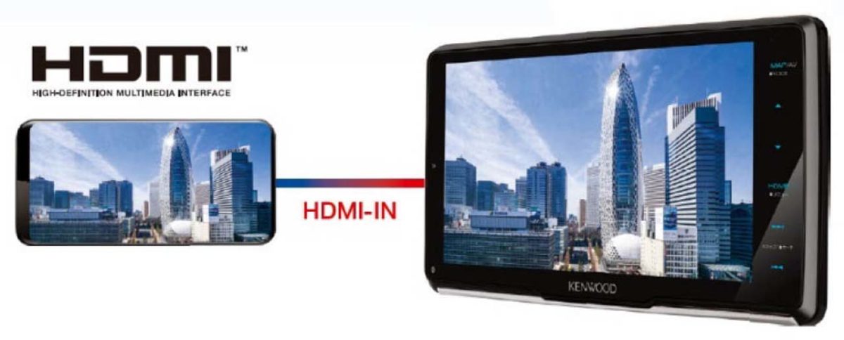 MDV-M907HDF、MDV-M907HDLのディスプレイはHD(1280×720p)解像度に対応した他、従来比約1.3倍の高輝度カスタムLEDバックライトのを組み合わせによって豊かな色彩とリアルな精細感を実現しています。さらに本体にはHDMI端子を備え、スマートフォンやデジタルカメラなどの映像をケーブル1本で大きなナビ画面で楽しめます。